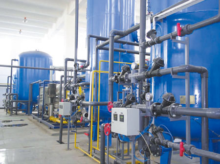 雙室浮動床是在單室浮動床中裝設(shè)一塊帶雙頭水帽的多孔板,分成兩室,上室裝填強型樹脂.下室裝弱型樹脂。在雙室浮動床中,兩種樹脂各自為對方提供了有利的工作條件,即弱型樹脂為強型樹脂提供了高再生水平。從而提高了強型樹脂的工作交換容量,而強型樹脂又允許弱型樹脂有較高的漏過,充分發(fā)揮了弱型樹脂的特長,這樣將提高再生效率、高再生容量的弱型和在高再生水平下工作的強型樹脂聯(lián)臺應(yīng)用于水的化學(xué)除鹽,可以在1013的再生比耗下,使陽離子交換工藝的平均工作交換容量達(dá)到1300—1 700mep/LR,陰離子交換工藝的平均工作交換容量達(dá)到600- 900mep/LR,這是其它工藝所達(dá)不到的。另外,雙室浮動床還具有用水率低,運行操作簡單及可在高流速下運行等特點。