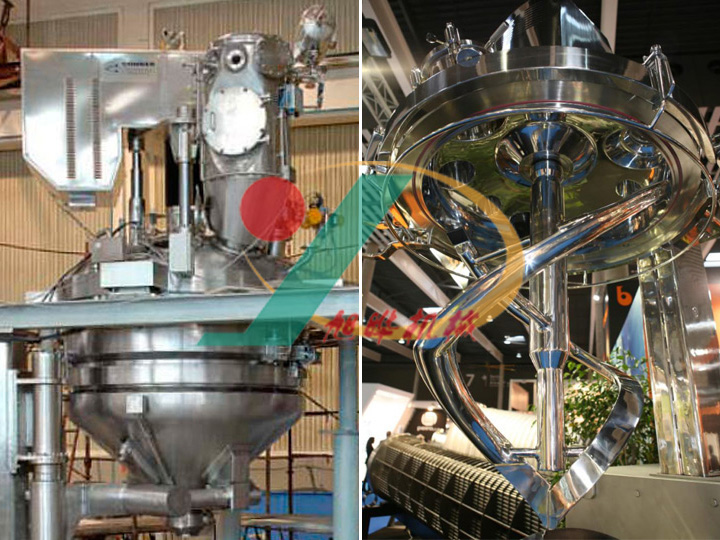 4、真空干燥出料:物料過濾濾干后,在干燥間段筒體夾套及空心軸和螺帶同時(shí)對(duì)物料進(jìn)行加熱,并在頂部抽真空對(duì)物料進(jìn)行真空低溫密閉干燥,干燥后自動(dòng)密閉出料。